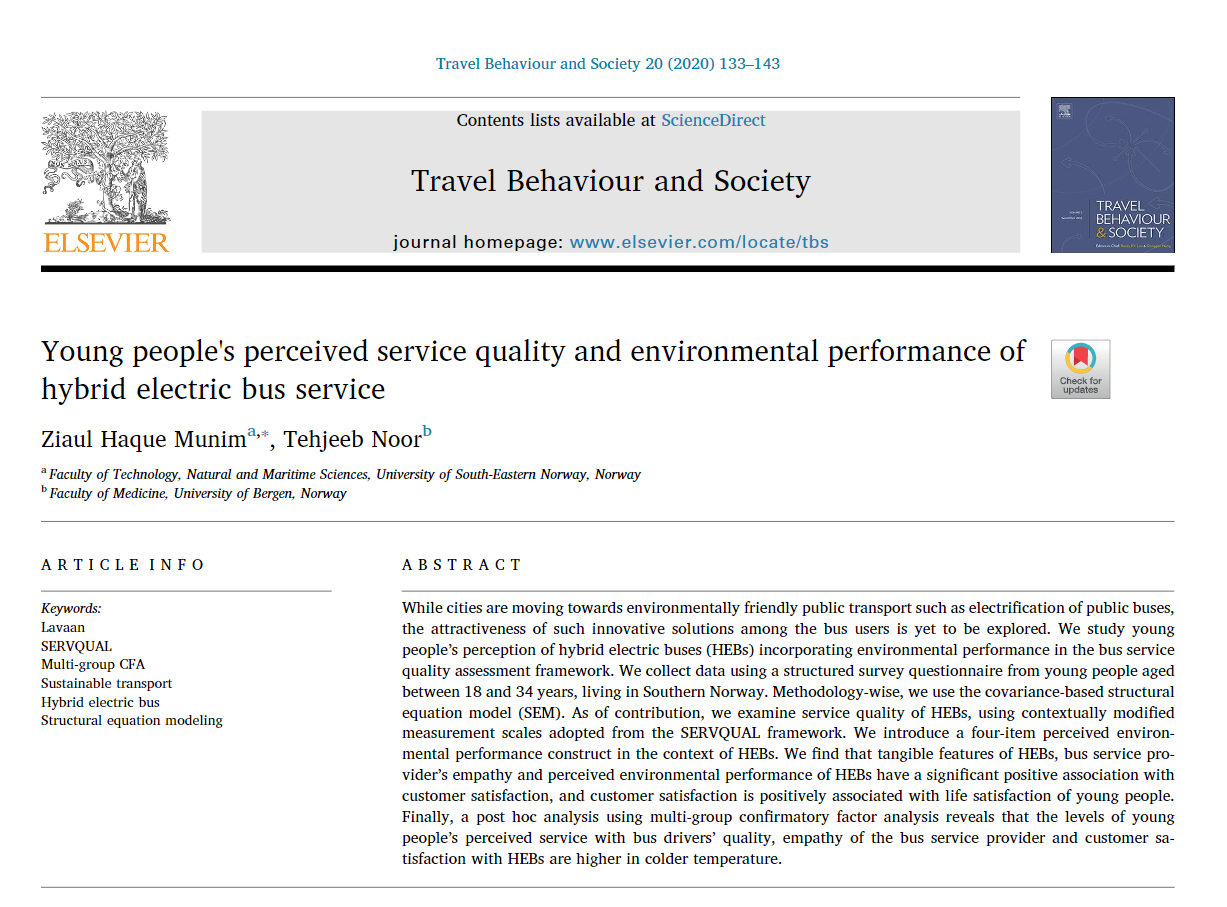 - Journal article: Young people’s perceived service quality and environmental performance of hybrid electric bus.